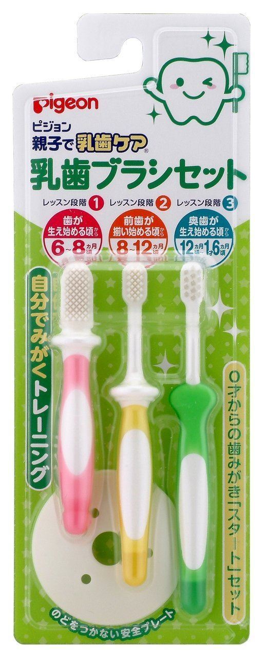 贝亲Pigeon 婴幼儿乳牙训练软毛牙刷 6个月-3岁 套装