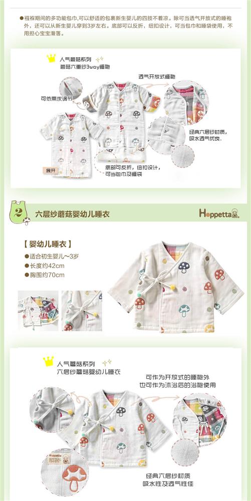 Hoppetta 日本直邮日本制新生儿衣服/婴幼儿睡袍 六重纱睡袍