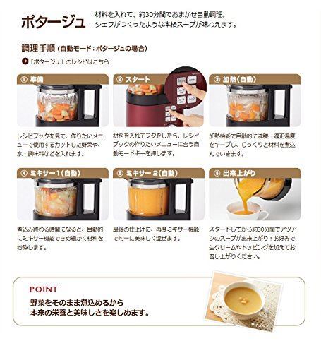 ハーフ機能を搭載し、2人前調理が可能に。スープ、ポタージュ、おかゆが約25分間で調理できる。