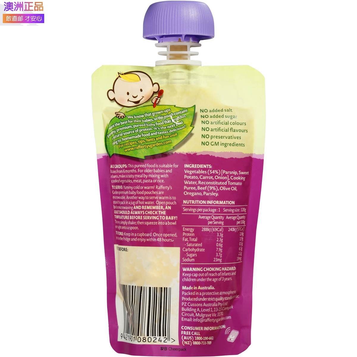 Raffertys 拉芙迪 6个月婴幼儿辅食 牛肉蔬菜泥 120g